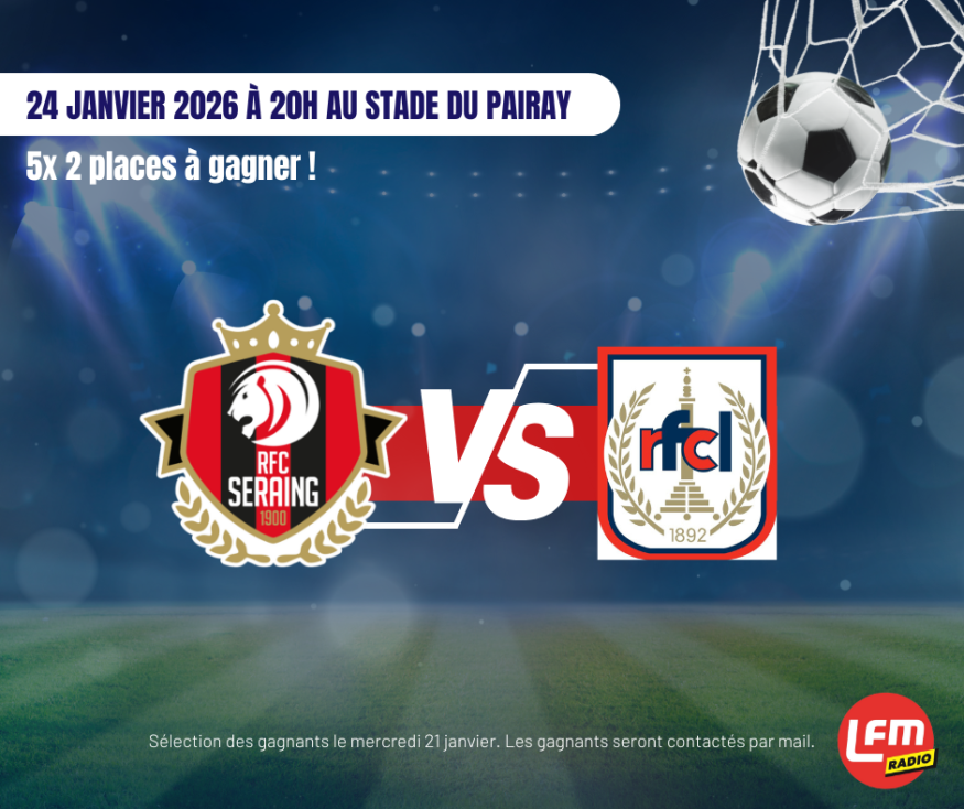 Remportez 5x2 places pour le match du RFC Seraing contre le RFC Liège le samedi 24 janvier au Stade du Pairay à 20h !