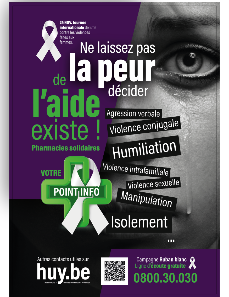 Le 25 novembre a été déclaré par l'ONU, journée internationale pour l'élimination de la violence à l'égard des femmes. Dans ce cadre, la ville de Huy, comme de nombreuses villes, a décidé de mener une campagne de sensibilisation autour de cette thématique. La campagne Ruban Blanc qui a débuté mardi dernier et qui se déroule jusqu'au 6 décembre a pour objectif de permettre aux victimes de violences de trouver les informations utiles à une prise en charge. Pour en parler, Laura Camus, du service prévention de la Ville de Huy est l'invité de Renaud.